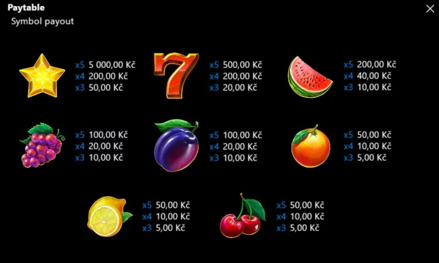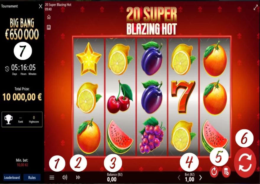 Je pozoruhodné i rozmezí sázek, které můžete vsadit. Nejnižší sázka činí 1 Kč, zatímco nejvyšší dosahuje 5 000 Kč. Spektrum je opravdu široké, což umožňuje každému hráči nastavit svou ideální úroveň rizika. Je jen na vás, kolik peněz chcete investovat do online výherního automatu 20 Super Blazing Hot při každém otočení.