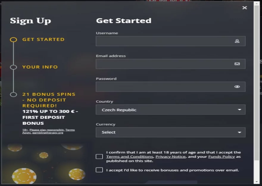 Rychlá registrace do 21Casino