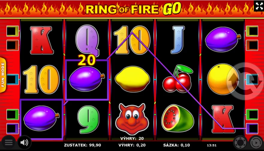 Výhra Scatter: Za dva nebo více symbolů Ring-of-Fire-Scatter je výhra Scatter. Symboly Scatter nemusí být uspořádány v jedné výherní linii.