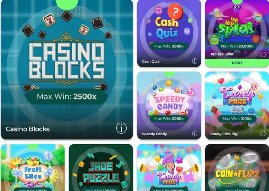 Druhou zajímavou hrou je Speedy Candy. Zde provedete sázku a snažíte se rozbít co nejvíce bonbonů. V případě, že jste úspěšní, splníte misi a získáte vyhrané peníze. V případě, že misi nestihnete splnit, o vyhrané peníze z konkrétní úrovně přijdete.