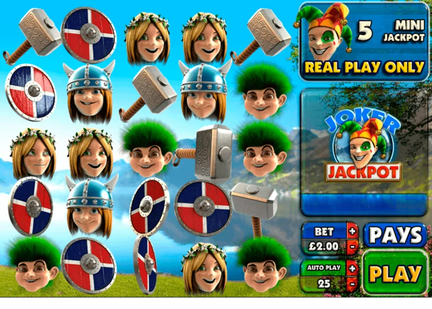 Zahrajte si online výherní automat Joker Jackpot zdarma, ve kterém se dáte na výpravu ve společnosti severských mořeplavců. Tento casino automat byl vytvořen herním studiem Big Time Gaming. Nemá žádné komplikované výherní linie a nabídne vám lukrativní jackpoty. Stačí na válcích vytvořit ty správné výherní kombinace. Jakmile tento online automat spustíte, objeví se před vámi symboly žolíků a spoustu symbolů připomínající středověk. Tento online hrací automat obsahuje celkem 7 symbolů, každý z nich má při tom odlišnou roli. Symbol zelenovlasé postavy je tím nejhodnotnějším symbolem, který vám vyplatí až 100 000x vaši sázku.