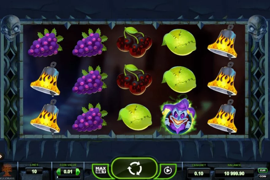 Dalším příspěvkem od Yggrasilu do našeho souboru joker automatů je The dark joker rizes! Jedná se o trošku jinou verzi rozesmátého jokera kterou znáte. Tento joker rozhodně nebude chtít tropit jen neškodnou neplechu. Klasické radostné prostředí je nahrazeno děsivým a chladným pozadím s děsivou hudbou, která doprovází každé zatočení. Čerstvé a šťavnaté ovoce je zase nahrazeno shnilým a rozkládajícím se, něco jako po zásahu někým z podsvětí. Ani joker nezáří světlými a živými barvami – s tímto šaškem si totiž není radno zahrávat. To ale neznamená, že zapomíná odměňovat své partnery ve zločinu. Pomozte mu snést zkázu na město a budete odměněni. Nabízíme jak zkušební verzi, kde si páchání neplechy můžete natrénovat zde, tak i ostrou akci v online casinu Fortune Clock.