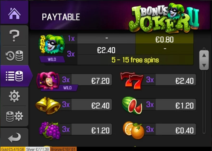 Online výherní automat Bonus Joker II nabízí RTP 95,2 %.