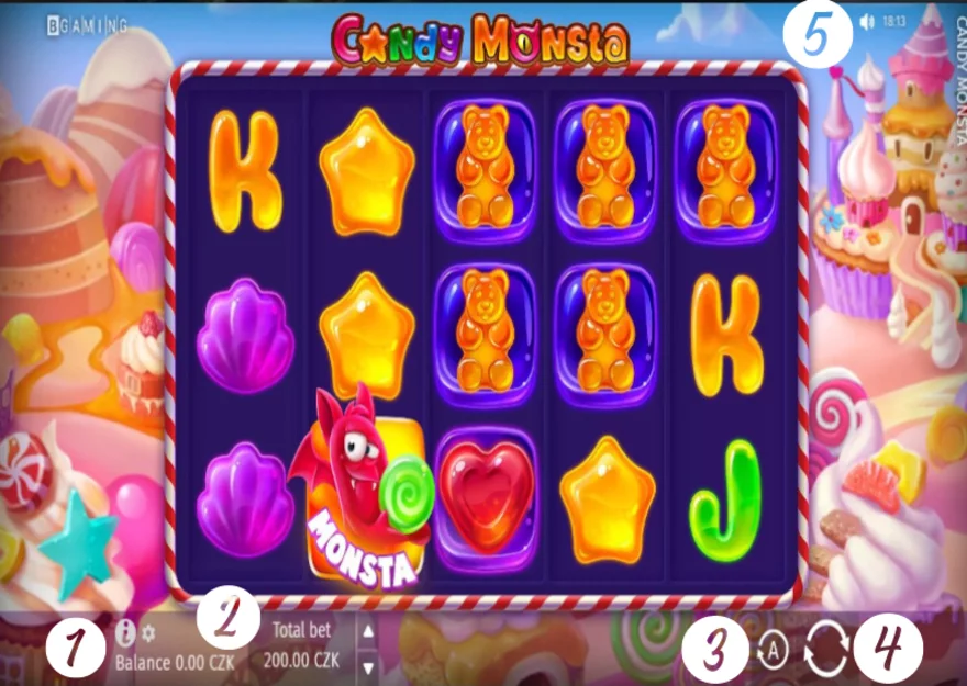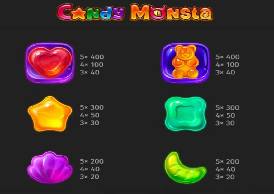 Candy Monsta nabízí hráčům pět válců, na kterých naleznete 20 výherních linií. Vyhodnocování výher pak probíhá výhradně zleva doprava. Samotný automat je zasazený do světa roztomilých příšerek a především cukrátek, která milujeme snad každý!