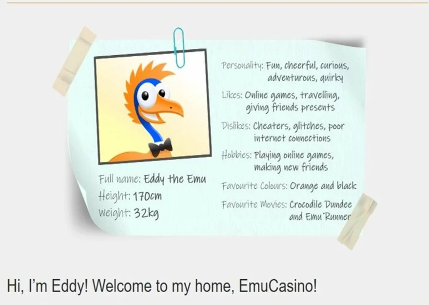 Do našeho hledáčku se dostalo velice nápadité online casino EMU Casino. Založeno v roce 2012, EMU Casino je rozhodně prověřeno hráči v dlouhém časovém úseku. Přečtěte si naší kompletní recenzi a zjistěte, jak si toto online casino vedené roztomilým tropickým zvířetem, které má i své jméno (emu Eddy), vede. My si to nyní velice rychle shrneme.