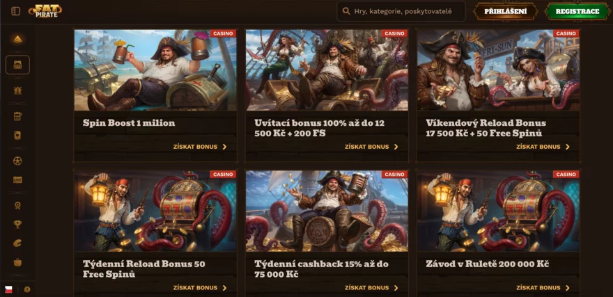 FatPirate promo code není jedinou možností, jak získat hodnotné bonusy. Pokud ale hledáte kombinaci uvítací nabídky, reload bonusů a cashbacku, je to rozhodně jeden z nejvýhodnějších dealů na trhu. U většiny online casin pro české hráče se setkáte buď s nižšími free spiny, nebo s přísnějšími podmínkami pro výběr.