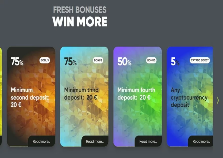 Online casino Fresh Casino si rozhodně dalo velice záležet na podobě svého webu a na tom co svým hráčům nabídne. V tomto online casinu se můžete těšit na bohatou nabídku hazardních her obohacenou i nevšedními hrami a živými hrami s krupiérem, možností vkladu v kryptoměnách, spoustou online casino bonusů a nevzpomnělo se ani na provoz live podpory 24/7.