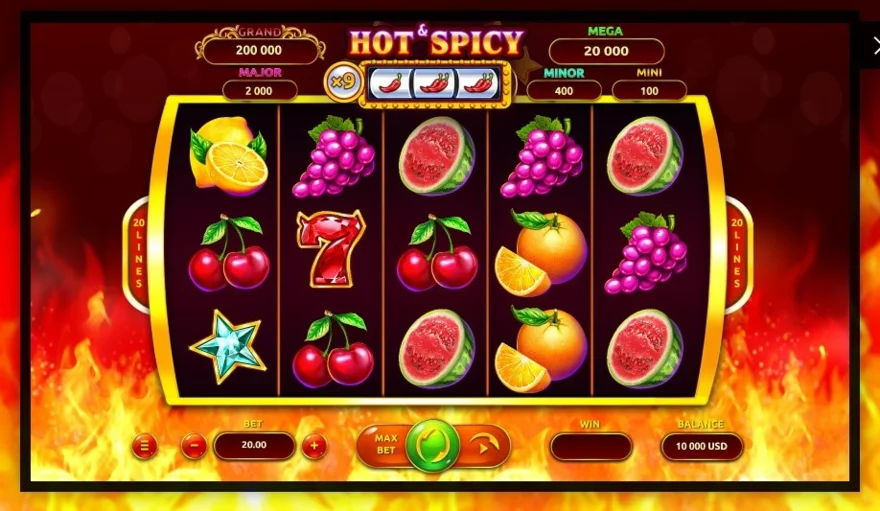 Hot and Spicy Jackpot je dalším skvělým automatem plným ovoce z dílny herních vývojářů Onlyplay. Tento středně volatilní automat nabídne skvělou zábavu a spoustu zajímavých bonusových funkcí včetně roztomilé funkce Chilly Mini Slot, který na rozdíl od základní mřížky 5x3 obsahuje 3x1 rozložení – tedy tři cívky a jednu řadu. RTP se pohybuje okolo 96,05 %, což je celkem slušná návratnost hráči. Ačkoliv je to ještě nováček protože k jeho vydání došlo teprve v říjnu tohoto roku, rozhodně stojí za vyzkoušení. Učinit tak můžete i zdarma v demo verzi, nebo za skutečné peníze – to vše v Playamo Casino.