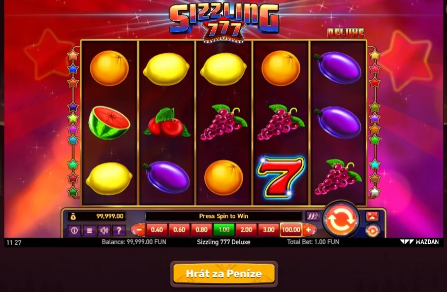 Wazdan je známý svými ovocnými automaty a tím, že jsou nesmírně kvalitní. Sizzling 777 Deluxe tak není žádnou výjimkou z tohoto pravidla. Automat poskytuje jedinečnou možnost si zvolit volatilitu, se kterou chcete hrát! Preferujete spíše častěji vyhrávat menší částky? Nebo jste trpělivý hráč, který si počká na svůj velký jackpot? Tato volba je pouze na vás! Přidejte k tomu ještě 10 výherních řad, které vyplácejí oboustranně, a máte recept na dokonalý automat. Ten si můžete pohodlně zahrát ve 5 Gringos kasinu, jak v demo verzi, tak za reálné peníze!