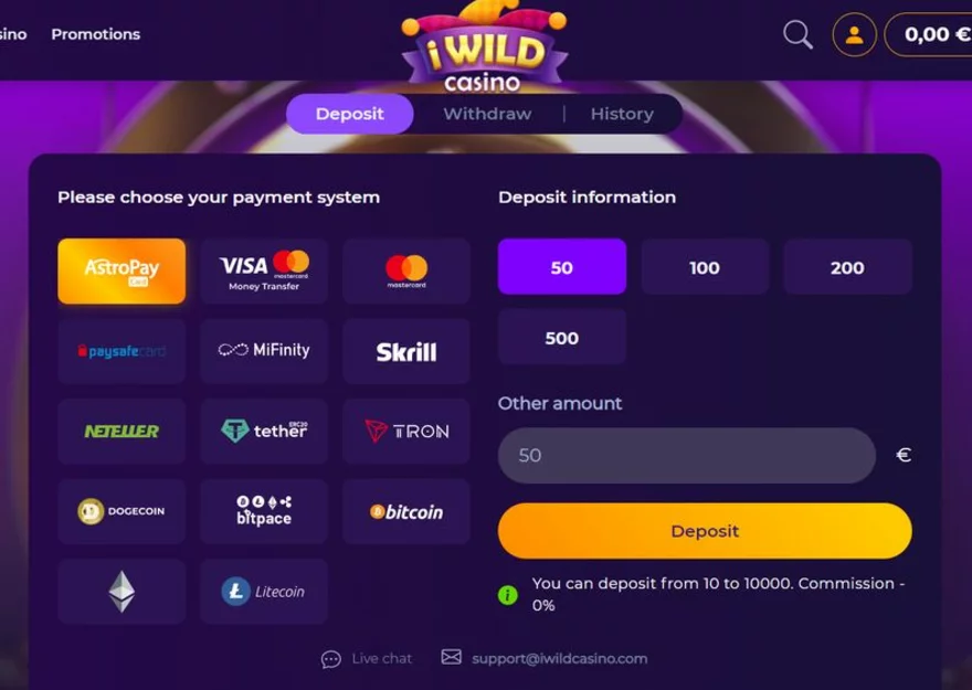 iWild Casino si pro své hráče opravdu připravilo spoustu úžasných příležitostí, při který si mohou užít spoustu zábavy, a dokonce i zhodnotit své vklady. Výběr her je zde opravdu velice rozsáhlý a myslíme si, že si zde nebude mít problém vyhrát i ten nejnáročnější hazardní hráč. Potěšíme i hráče, kteří rádi hrají i za peníze, jelikož toto online casino nabízí svým hráčům vklad hned několika platebními metodami, takže se nemusíte bát, že byste nenašli tu svou oblíbenou. Nezapomnělo se zde ani na kryptoměny! Mimo jiné vás zde pobaví také spousta bonusů a hlavně jeden velký tučný uvítací bonus v online casinu iWild Casino!