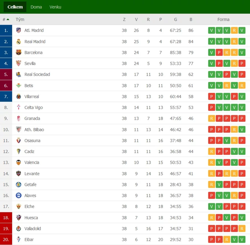 Konečná tabulka LaLigy 2020/21