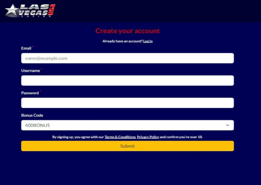 Zaujala vás nabídky LasVegas USA Casina? Pak si můžete rychle vytvořit herní účet. Registrační formulář je přehledný a jeho vyplnění rychlé.