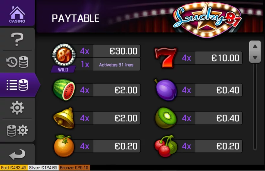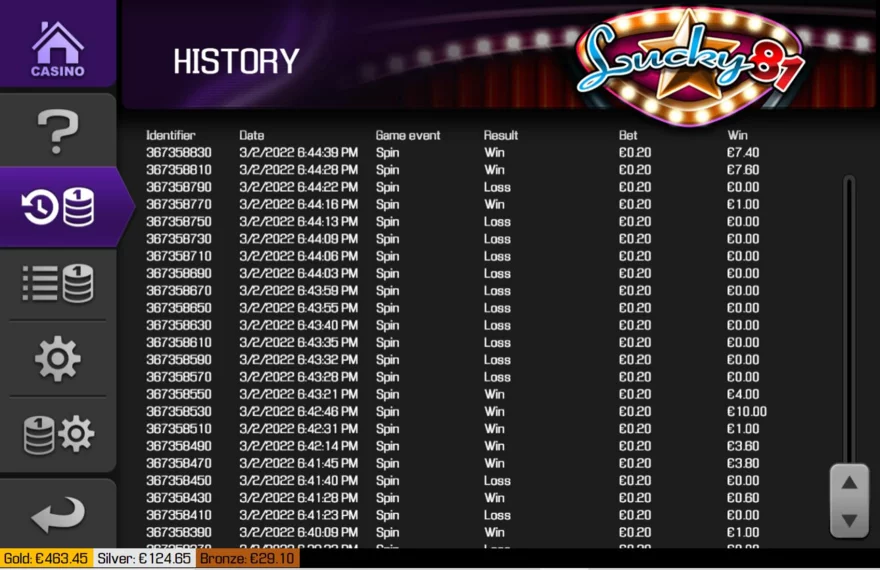 Co se mi na Lucky 81 líbí? Má svoje herní menu, kde máte vysvětlivky v angličtině a historii vaších výher, takže se můžete na vše podrobně podívat a podrobně prozkoumat.