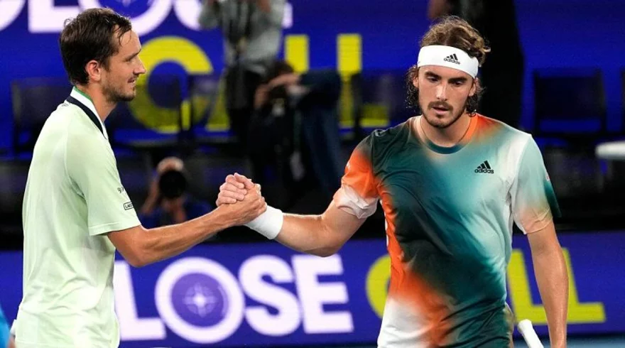 Druhé semifinálové klání mělo stejné obsazení jako loni. Proti sobě se postavili Daniil Medveděv a Stefanos Tsitsipas. A stejně jako loni jde dál ruský hráč. Ačkoliv průběh zápasu byl o poznání dramatičtější než loni. Tehdy Medveděv svého soupeře přejel 3:0 na sety. Letos se nadřel o poznání více. Hned úvodní sada dospěla do tie breaku, kde v jednu chvíli vedl Řek již 4:1. Náskok však ztratil a první set získal ruský tenista. V tom druhém však přišel hned v prvním gamu o servis a byť jej v šesté hře dokázal vybojovat zpět, na druhý break Tsitsipase v deváté hře již odpovědět nedokázal. Za stavu 1:1 na sety se diváci pomalu těšili na drama, k němu nedošlo. Třetí set po jediném breaku získal Medveděv a ve čtvrté sadě se řecký tenista již úplně sesypal, soupeři dvakrát daroval servis a zároveň i účast ve finále Australian Open.