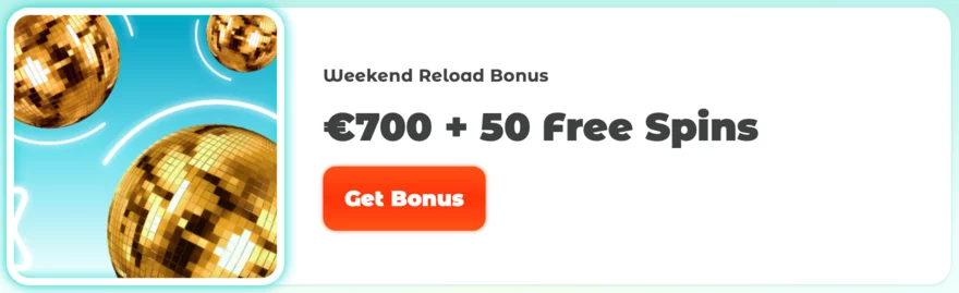V rámci této promoakce máte možnost získat online casino bonus v hodnotě až 17,500 Kč / 700 € a 50 free spinů. To znamená, že stačí jen nabit svůj herní účet na víkend a získat tak peněžní odměnu a šanci na výhry.