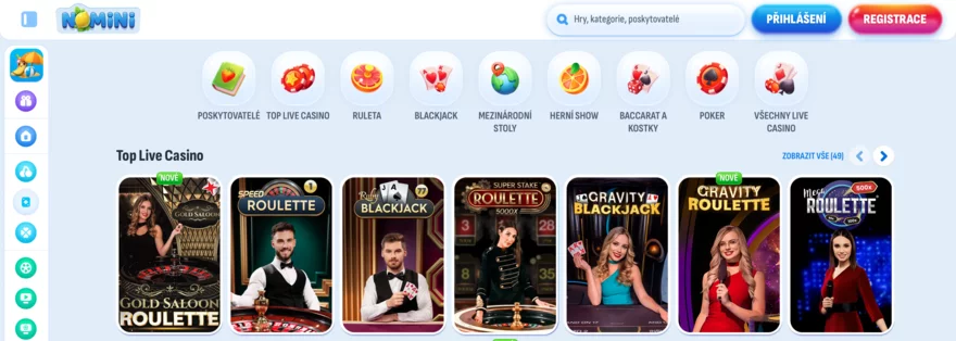 Ponořte se do vzrušujícího světa online her s živými dealery v live casinu Nomini! Zažijete atmosféru skutečného casina, aniž byste museli opustit pohodlí svého domova, a budete mít šanci se pobavit s hráči i krupiéry a třeba i vyhrát. Hraní v live casinu Nomini vás přenese přímo k profesionálním dealerům a umožní vám vychutnat si širokou škálu her, jako je blackjack, ruleta, baccarat nebo poker.