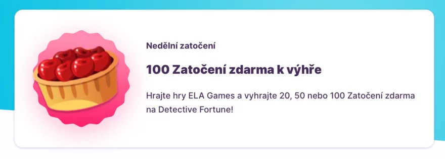 Nedělní bonusová nabídka v Casinu Nomini přináší skvělý způsob, jak si zpříjemnit konec týdne. Každou neděli můžete v casinu Nomini získat až 100 zatočení zdarma na hru Detective Fortune od ELA Games. Tato nabídka je k dispozici všem hráčům, kteří vsadí určitou částku na hry od ELA Games.