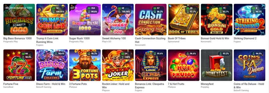 Celkově jde o pestrý a široký výběr, který doplňuje hlavní knihovnu slotů a nabízí hráčům možnost ucházet se o mírně progresivní výhry.