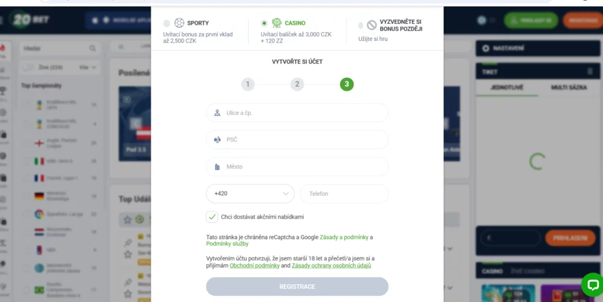 Registrace do 20Bet - kompletní průvodce