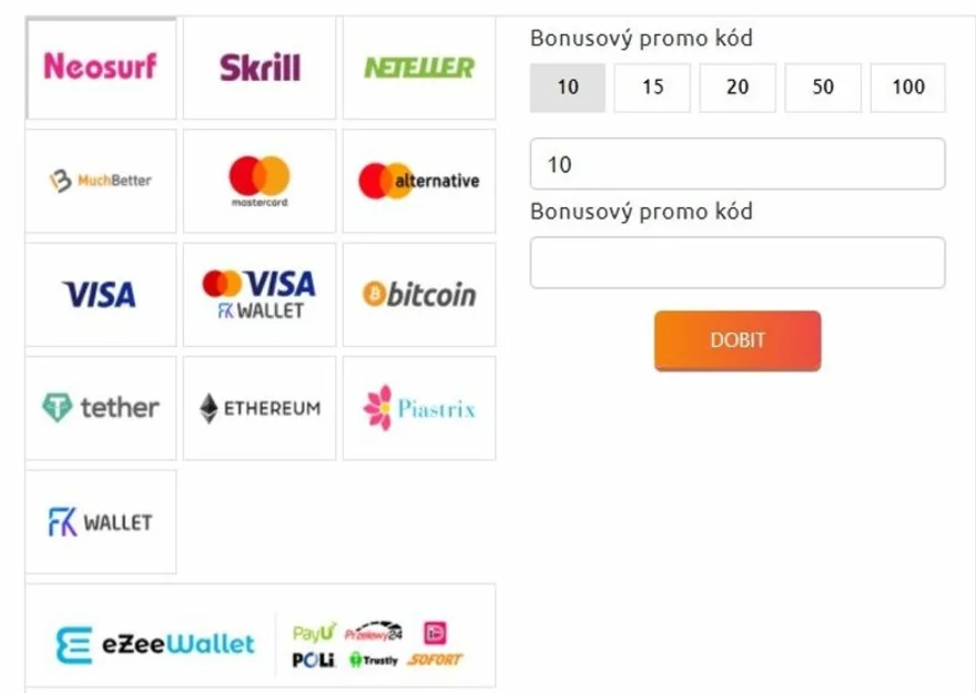 Celkové množství měn ve kterých lze vést hráčské konto je bohužel pouze 3, takže nepotěšíme moc hráče, kteří preferují hraní v českých korunách.