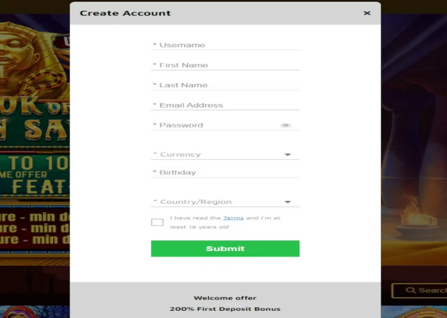 Dále je potřeba doplnit datum vašeho narození. To slouží také k ověření, že vám bylo více jak 18 let a jste tedy způsobilí hrát hazardní hry. Poté ještě vyberete zemi, ve vašem případě pravděpodobně Česká republika, a nakonec a odsouhlasíte obchodní podmínky casina.