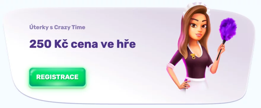 Speciální úterní promoakce "Úterky s Crazy Time" nabízí hráčům šanci získat odměnu ve výši 250 Kč, pokud se jim podaří splnit určité úkoly ve hře Crazy Time. Je to skvělá příležitost nejen vyzkoušet své dovednosti, ale také získat odměnu za svůj čas strávený v casinu.