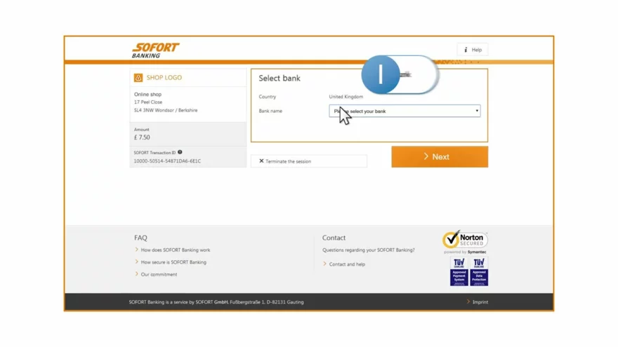 Když se rozhodnete zaplatit prostřednictvím platební metody SOFORT, jste přesměrováni do online prostředí SOFORT Banking. Zde si vybíráte svou zemi a banku. Přihlásíte se pomocí svých přihlašovacích údajů k online bankovnictví, aby viděli své účty. Zákazníci si pak vyberou, ze kterého účtu chtějí platbu převést. Nakonec je platba autorizována a zákazníci se vrátí na původní stránku. Obchodník pak okamžitě obdrží potvrzení o platbě.