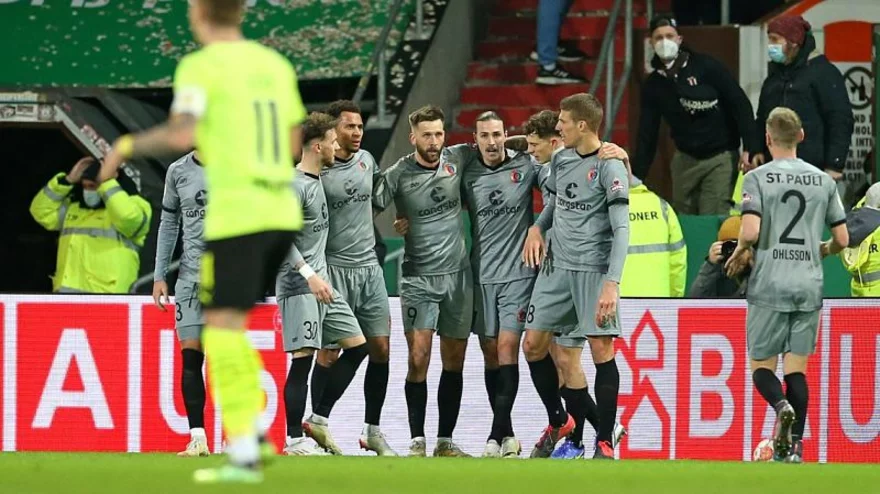 Po vypadnutí Bayernu se zdálo, že vestfálskému celku už nebude nic bránit v cestě za obhajobou loňského triumfu v DFB poháru. Proti St. Pauli neponechal dortmundský trenér Rose nic náhodě a poslal na hřiště nejsilnější sestavu. To však nakonec nebylo nic platné. Už v prvním poločase vedl St. Pauli o dvě branky, když se nejdříve ve 4. minutě trefil Amenyido a pět minut před koncem prvního poločasu si dal vlastní gól Witsel. Dortmund se zmohl už jen na snížení z kopačky Haalanda, který proměnil v 58. minutě pokutový kop. Favoritovi nepomohl ani dvojnásobný počet střel na branku(12:6), ani 65% držení míče.