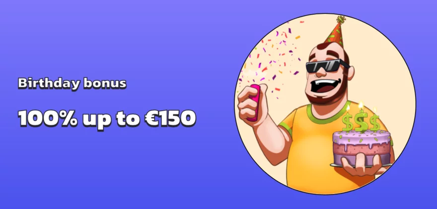 SpinsBro vám přináší jedinečnou šanci oslavit své narozeniny s pořádnou odměnou. S narozeninovým bonusem ve výši 100% až do €150 získáte okamžitou porci štěstí a výher!