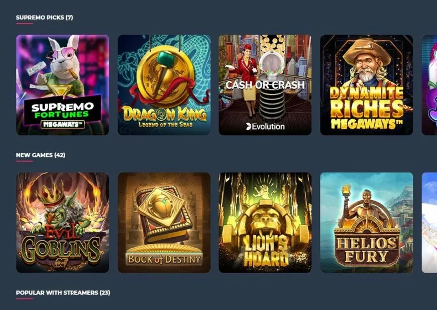 Online casino si své hráče chce získat naprostou jednoduchostí. Registrace do něj je velice snadná, navigace hazardním webem jakbysmet. Ocenili jsme fakt, že do Supremo Casino lze vkládat kryptoměny. Vzhled casina je zábavný a moderní, takže nikoho neurazí. Supremo Casino si pro své hráče také připravilo různé turnaje a i živé hry s krupiérem.
