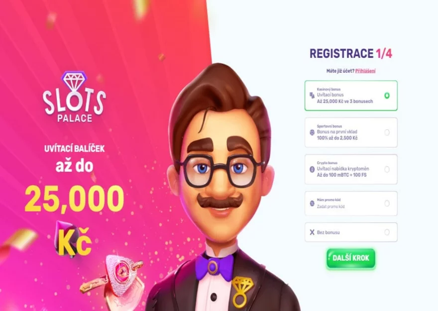 Uvítací balíček až do 25 000 Kč u SlotsPalace casino 🎁