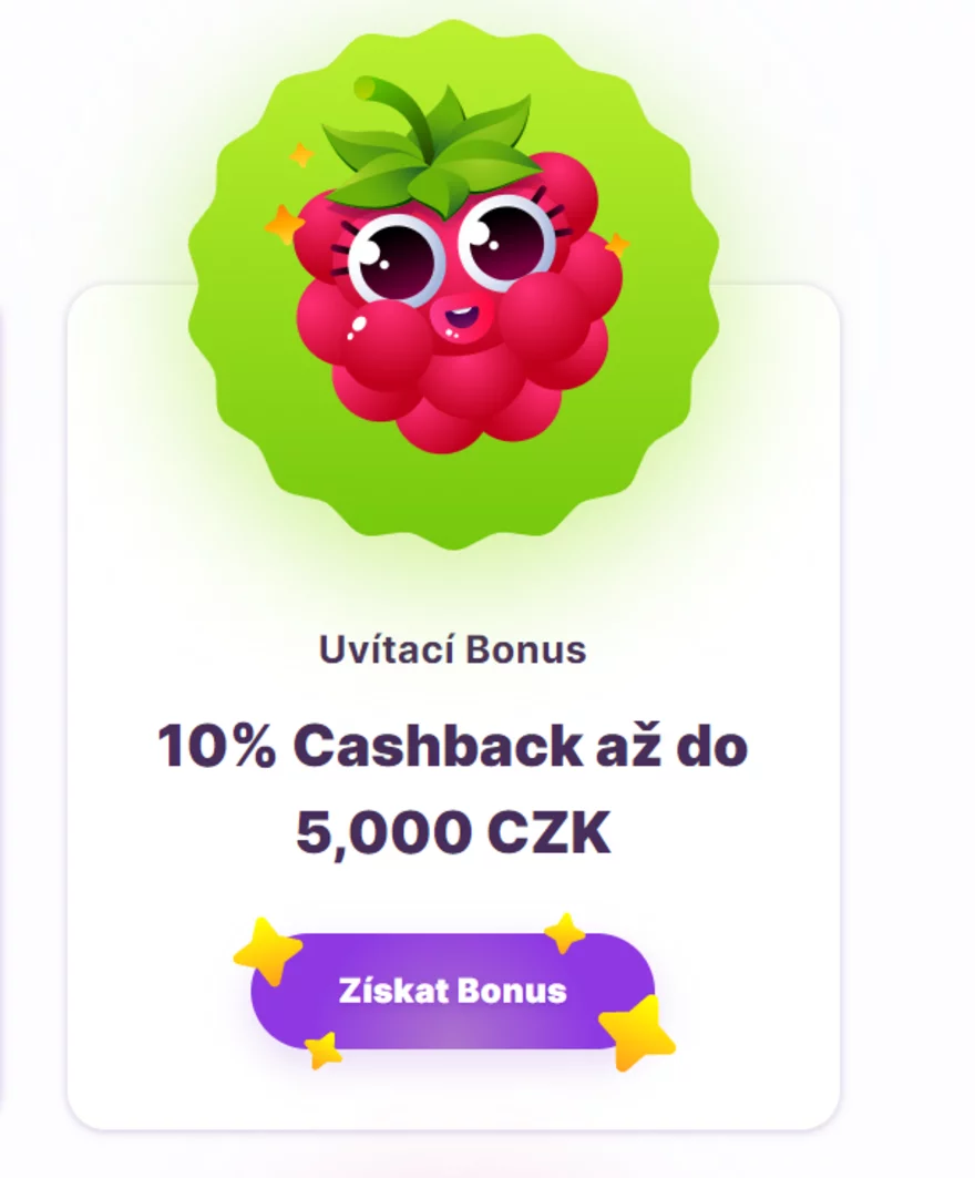 Pokud se spokojíte s menší hodnotou cashbacku, vzácnější maliny budou přesně to pravé růžové! Výše cashbacku činí 10 %. Minimální částka, která se vám lze vrátit je 125 Kč a nejvyšší možná činí 5 000 Kč. Navíc malinový cashback není limitován pouze na živé hry s krupiérem! Pro nárok na cashback musíte vložit do casina minimálně 50 euro. Zároveň musíte ztratit částku odpovídající alespoň hodnotě vašeho vkladu během 48 hodin následujícím po učinění tohoto vkladu.