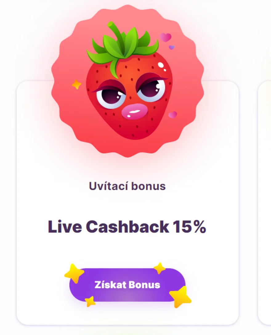 Hraní živých her s jahodovou příchutí? Ano prosím! Pokud aktivujete tento jahodový bonus, čeká vás navrácení části prohraných peněz v live casinu ve formě cashbacku. Pro nárok na cashback musíte vložit do casina minimálně 35 euro. Zároveň musíte ztratit částku odpovídající alespoň hodnotě vašeho vkladu během 48 hodin následujícím po učinění tohoto vkladu. Hodnota cashbacku činí 15 %. Maximální nárokovatelná částka je 250 euro.