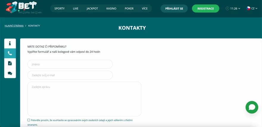 Kontaktní formulář a centrum nápovědy v 22Bet