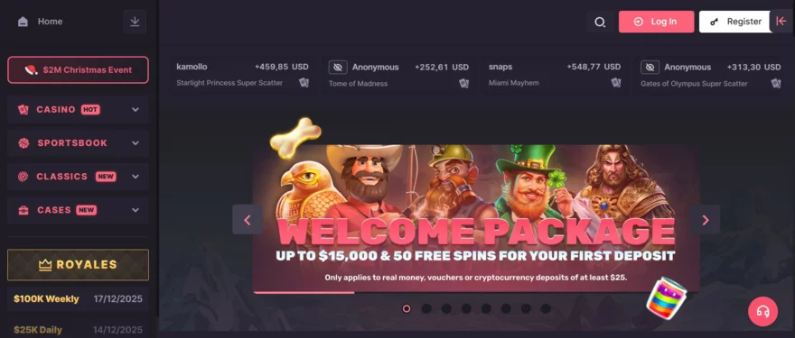 Hlavní doménou kasina jsou však kryptoměny. Platforma plně podporuje Bitcoin, Ethereum, Litecoin, USDT (Tether), USDC, BNB a Tron. Obrovskou výhodou je výplata v kryptoměnách, která probíhá téměř okamžitě – peníze máte na své peněžence často do několika minut.