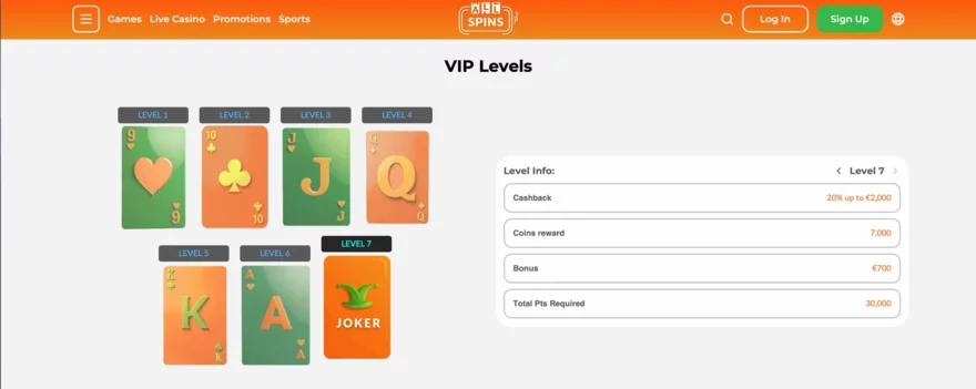 Pro aktivní hráče je připraven sedmiúrovňový VIP a loyalty program, kde získáváte body za hraní, které lze směnit za další bonusy, free spiny nebo exkluzivní odměny. VIP hráči mají přístup k individuálním promoakcím, rychlejším výplatám a osobnímu manažerovi. Věrnostní systém je plně automatizovaný a jeho úroveň roste podle vaší aktivity.