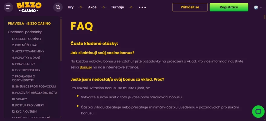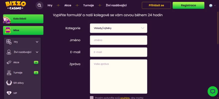 Zákaznická podpora Bizzo Casino