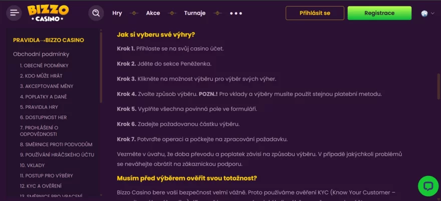 Z hlediska bezpečnosti je důležité zmínit, že Bizzo operuje pod licencí autority Curaçao. To s sebou nese povinnost dodržovat standardy ochrany dat (šifrování) a procesy KYC (Know Your Customer – ověření identity). Ačkoliv web neuvádí technické detaily o konkrétním typu šifrování (např. verze SSL certifikátu) přímo v sekci podpory, v rámci zásad ochrany osobních údajů je patrné, že s daty je nakládáno podle moderních bezpečnostních norem. Do budoucna by však větší transparentnost v této oblasti kasinu slušela. 🔒