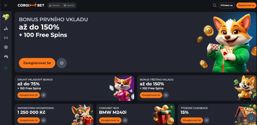 CorgiBet je moderní online casino se stylovým motivem roztomilého corgiho na pláži. Spustilo se v polovině roku 2025 pod křídly společnosti Ceshiroza Limitada a provozuje se na základě komorského povolení z ostrova Anjouan. Tato platforma sází na masivní uvítací bonusy, velký výběr her od předních dodavatelů a dokonce i kryptoměny a sportovní sázení. V naší recenzi probereme detaily bonusů, herní knihovnu a design, bezpečnostní opatření, mobilní aplikaci, platební možnosti, zákaznický servis i lokalizaci pro české hráče. Cílem je poskytnout ucelený pohled a pomoci se rozhodnout, zda CorgiBet patří mezi zahraniční casina, která pro české hráče mají co nabídnout.