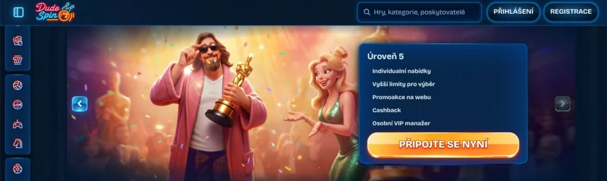 DudeSpin Casino je online casino s výraznou bowlingovou tématikou a retro neonovým designem, který připomíná legendární film The Big Lebowski. Na scénu vstoupilo v roce 2025 a okamžitě vzbudilo pozornost originální atmosférou a bohatou nabídkou her. V naší recenzi rozklíčujeme vše důležité – od lákavých bonusových nabídek a jejich podmínek, přes uživatelsky přívětivou platformu, až po zabezpečení, mobilní hraní, platební metody, zákaznickou podporu a lokalizaci pro české hráče. Věnovat se budeme také nabídce her v casinu, včetně online automatů, jackpotových her, stolních her, živého casina a speciálních miniher.
