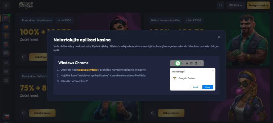 Samostatnou mobilní aplikaci Gangsta Casino v současnosti nenabízí. To ale nevadí – mobilní web je tak dobře optimalizovaný, že appku plně nahradí. Navigace i hraní přes prohlížeč jsou jednoduché a rychlé. Hráčský zážitek je výborný i bez appky: všechny funkce casina jsou dostupné a hry reagují svižně.