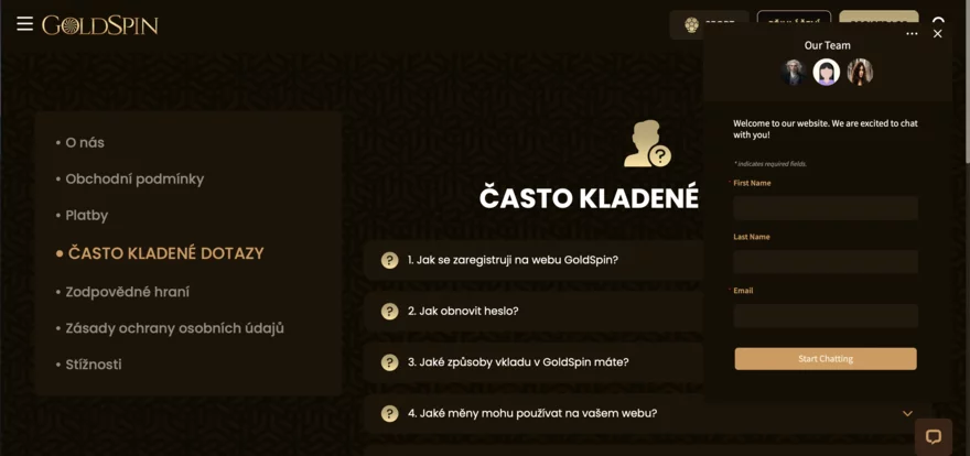 Zákaznická podpora GoldSpin Casino je jedním z klíčových prvků, který zajišťuje, že hráči mají vždy k dispozici pomoc, když ji potřebují. Pojďme se tedy podívat na dostupnost zákaznické podpory, možnosti kontaktu a jazykové varianty rozhraní casina. Casino nabízí několik způsobů, jak se dostat do kontaktu s jejich podporou. Nejrychlejší a nejefektivnější metodou je živý chat, který je k dispozici 24/7. Tento způsob komunikace je ideální pro okamžité dotazy a urgentní záležitosti. Pro méně naléhavé problémy mohou hráči využít e-mailovou podporu (support@goldspin66888.com), kde odpověď obvykle obdrží do 24 hodin.