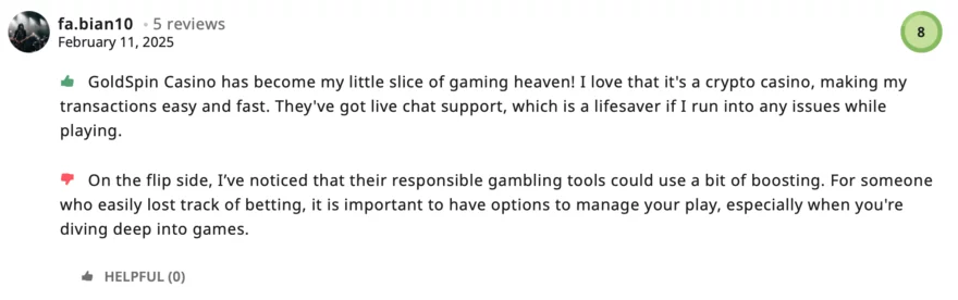Jako nováček v odvětví nemá GoldSpin Casino rozsáhlou historii. Dostupné recenze jsou smíšené; například web CorrectCasinos udělil hodnocení 6,4/10, což naznačuje solidní, avšak ne bezchybnou reputaci. Na fórech a recenzních webech se objevují jak pozitivní, tak negativní komentáře, přičemž některé stížnosti se týkají pomalejších výběrů nebo komunikace s podporou. Je důležité poznamenat, že společnost aktivně reaguje na tyto stížnosti a snaží se je řešit, což svědčí o snaze zlepšovat služby.