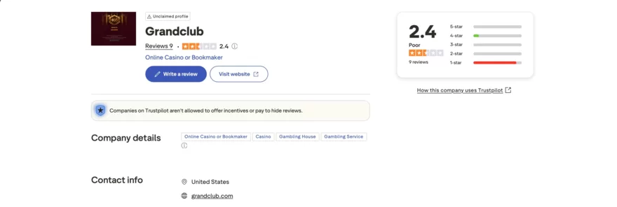 Recenze ostatních hráčů jsou klíčové, proto se musíme podívat i na zpětnou vazbu, hodnocení a osobní zkušenosti uživatelů Grand Club casina. Co se týče reputace, Grand Club získal na CorrectCasinos Trust Score 8,3/10 a hodnocení 2,4/5 na Trustpilot, a není na žádných blacklistech. Hráči chválí široký výběr her, bonusy a nonstop zákaznickou podporu. Kritika se týká hlavně přísných bonusových podmínek – například zákazu dvoufázového sázení a jiných nízkorizikových strategií – a občas pomalejších výplat či komplikací při KYC, kdy výběr trval i přes týden. Tyto podmínky jsou ale běžné a míří na prevenci zneužívání bonusů.