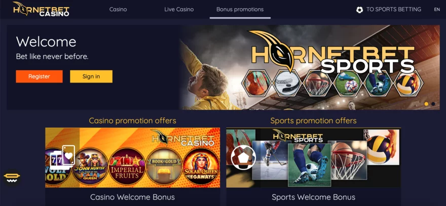 Hornetbet nabízí pestrou škálu bonusů a propagačních akcí, které jsou navrženy tak, aby oslovily různé typy hráčů. Uvítací bonus pro nové hráče zahrnuje 100% bonus až do výše €300 a 40 free spinů. Minimální vklad je €10, přičemž podmínky protočení jsou u většiny bonusů x28 pro bonus a x20 pro free spiny. Pro uvítaci bonus jsou k dispozici bonusové kódy, jako například WELCOME300. Hornetbet casino nabízí také denní free spiny, kde hráči mohou získat až 50 free spinů při vkladu minimálně €15. Kromě toho mohou hráči získat také free spiny bez vkladu ihned po registraci!