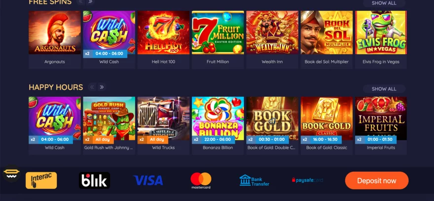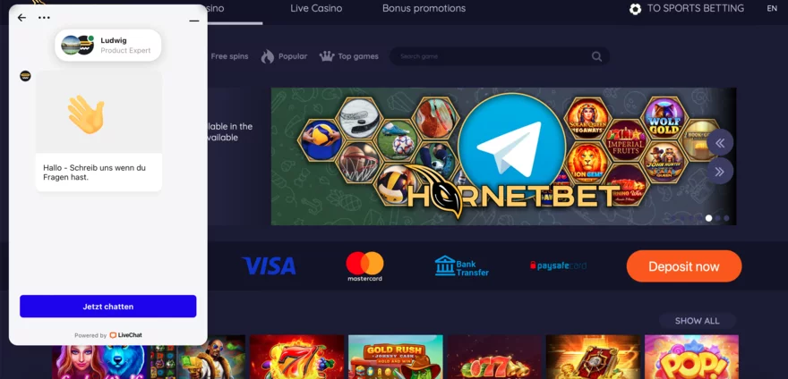 Hornetbet Casino nabízí živé hry, včetně populárních stolních her jako blackjack, baccarat, ruleta a poker. Spolupráce s poskytovateli jako Evolution Gaming a Ezugi zaručuje vysokou kvalitu Live casina. Casino také nabízí různé unikátní hry a interaktivní funkce včetně crash games a progresivních jackpotů, které zvyšují celkový herní zážitek. Hornetbet Casino se zaměřuje na široké spektrum hráčů a trhů a nabízí hry s vysokým RTP, jackpotové hry a bohatou nabídku stolních her. Design casina je uživatelsky přívětivý a přehledný, což usnadňuje navigaci a hledání oblíbených her. Platforma také zahrnuje detailní sekci plateb a různé bonusové nabídky, které jsou snadno přístupné a přehledně zobrazené.