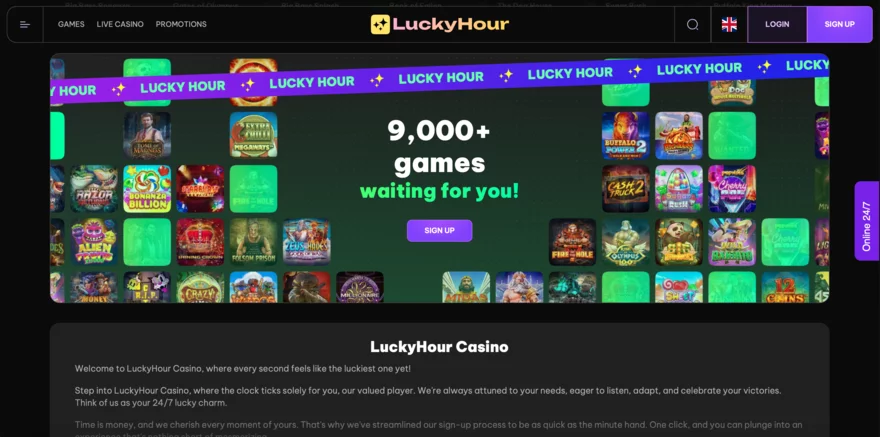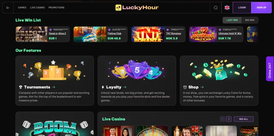 LuckyHour Casino se zaměřuje na poskytování kvalitního herního zážitku s více než 7,500 hrami od více než 80 předních poskytovatelů softwaru. Toto casino rovněž podporuje různé platební metody včetně tradičních bankovních převodů, kreditních karet a moderních kryptoměn, což zajišťuje flexibilitu a pohodlí pro hráče.