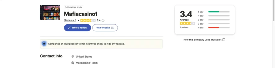 Důvěryhodnost Mafia Casina je celkově smíšená. Mnoho nezávislých webů se tedy zabývá tím, jak je kasino Mafia Casino hodnoceno z hlediska bezpečnosti, spravedlnosti a důvěryhodnosti pro hráče. Uživatelské skóre na Askgamblers činí 6.1/10 a na Trustpilot 3.4/5,přičemž některé recenze chválí rychlé výběry či přehledný VIP program, ale jiné kritizují zpoždění zákaznické podpory nebo složitost smluvních podmínek. Stížnosti, negativní zkušenosti a zpětnou vazbu od hráčů, včetně konkrétních případů sporů o výhry či výběry se neobjevují až tak často. V databázích stížností se občas objeví vyšší počet otevřených a nevyřešených případů, včetně zadržených výplat a problémů při ověřování identity. Přidružená casina od stejného provozovatele vykazují podobné vzorce – zejména v oblasti odmítnutých nebo ignorovaných stížností. I když se nejedná o casino na černé listině, index bezpečnosti zůstává spíše průměrný. Pozitivní je, že většina