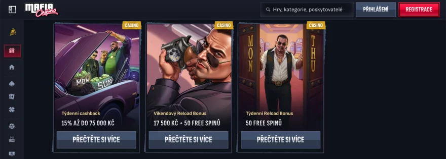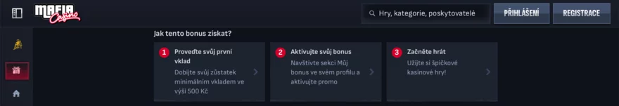 Najděte konkrétní nabídku, u které chcete Mafia casino free spiny získat (welcome, reload, turnaj).