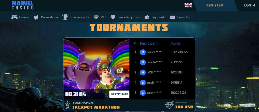 Turnaje: Marvel Casino pořádá pravidelné tematické turnaje o stovky až tisíce eur a free spiny. Hráči sbírají body do žebříčku hraním vybraných automatů. Celkově je VIP program velmi štědrý a díky tematice "kamenů nekonečna" i zábavný.